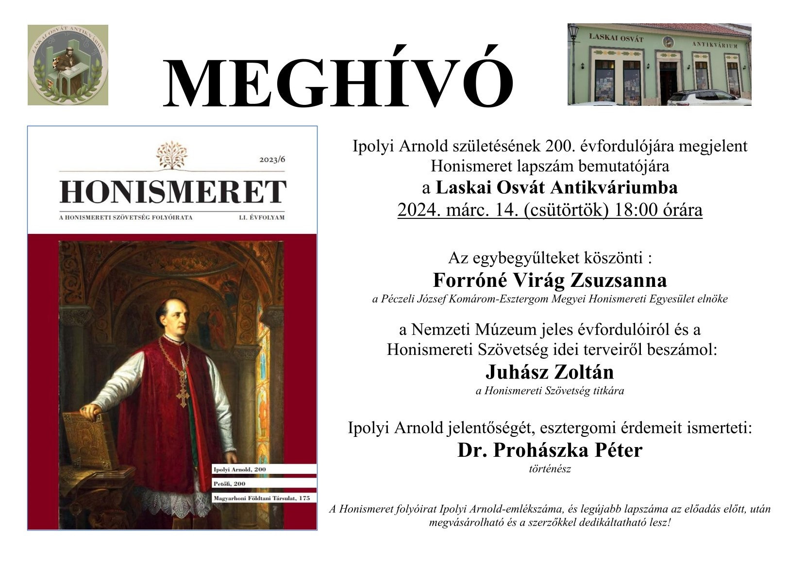 Sok szeretettel várjuk tagjainat 2024. március 14.-én 18 órakor a Honismeret című folyóirat lapszámának bemutatójára a Laskai Osvát Antikváriumba.