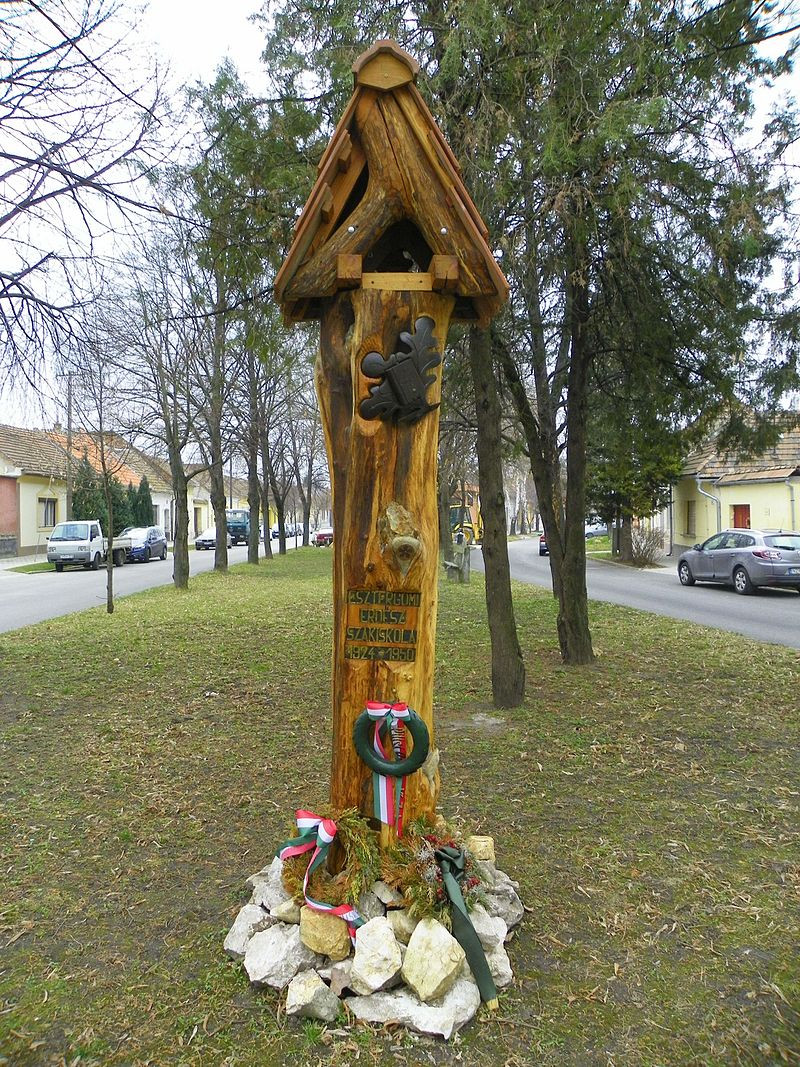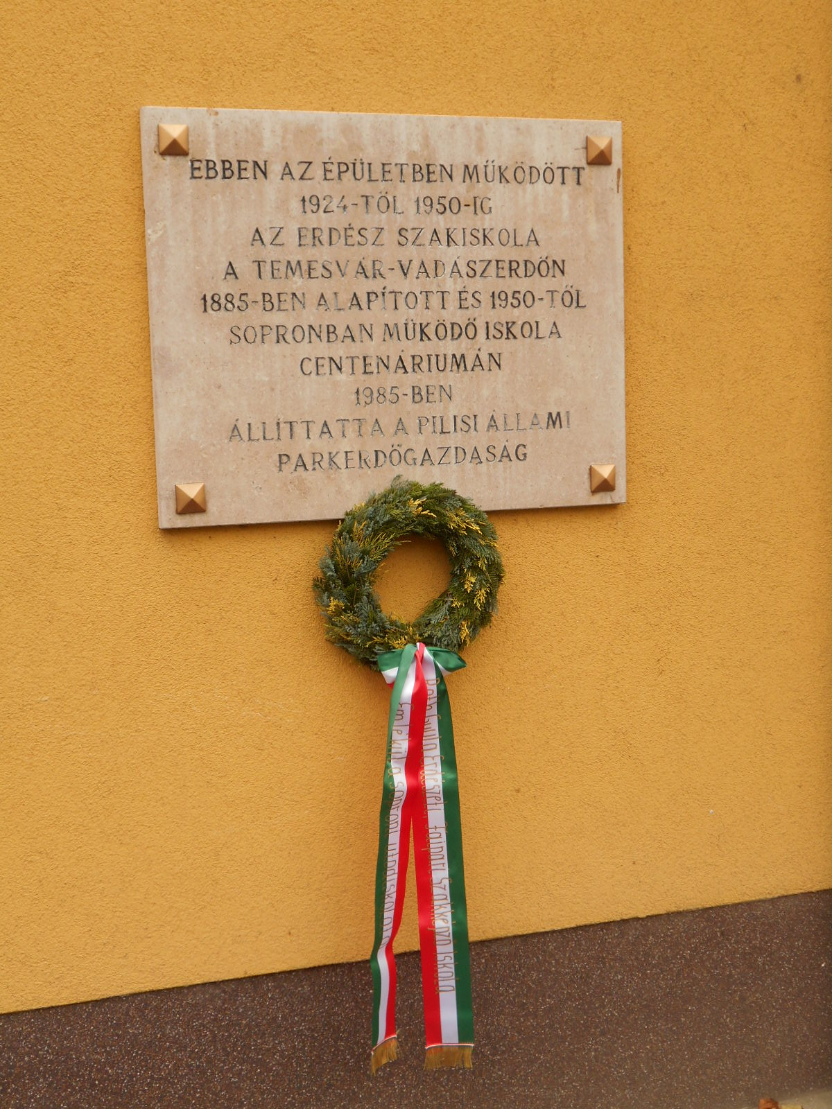 Az emlékoszlop felirata: "Esztergom Erdészeti Iskola 1924-1950"