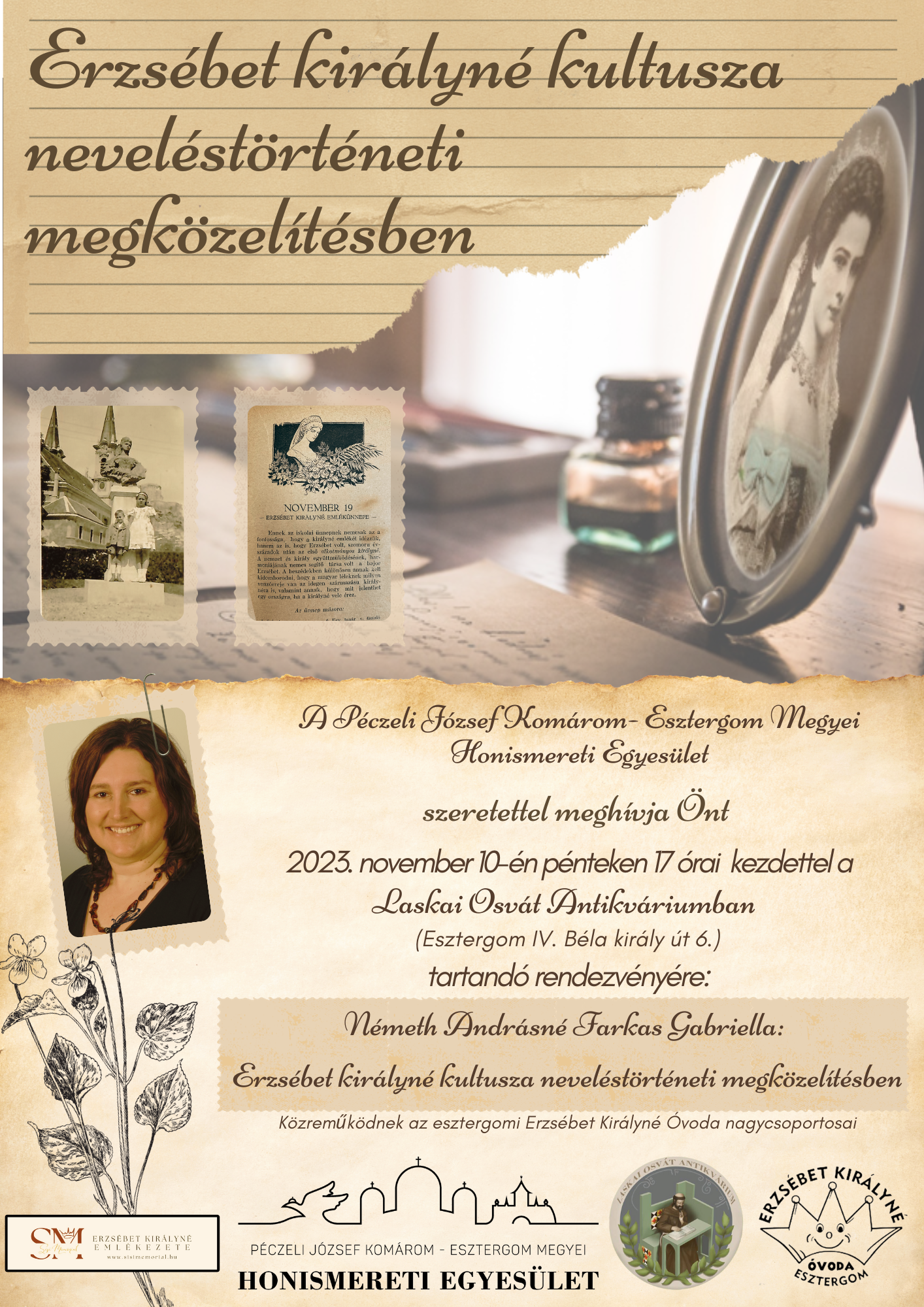 Sok szeretettel várjuk tagjainkat november 11-én 17 órára a Laskai Osvát Antikváriumba (Esztergom, IV. Béla király utca 6.) Németh Andrásné Farkas Gabriella Sissi királynőről szóló előadására.