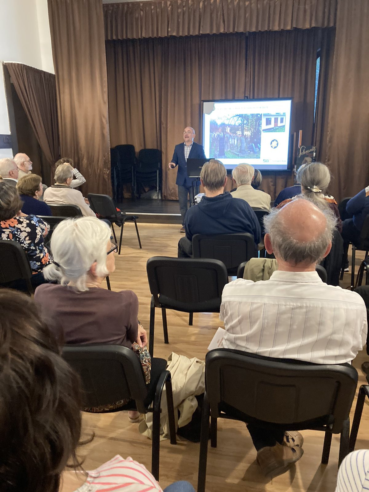 A másfél órás előadáson, vetített képek útján kaptak betekintést az érdeklődők az esztergomi zsidóság 3. évszázadtól számított történelméről, valamint az előadásnak helyet adó épület történetéről, mely Baumhorn Lipót építészi munkásságának első, saját tervezésű zsinagógája is egyben.